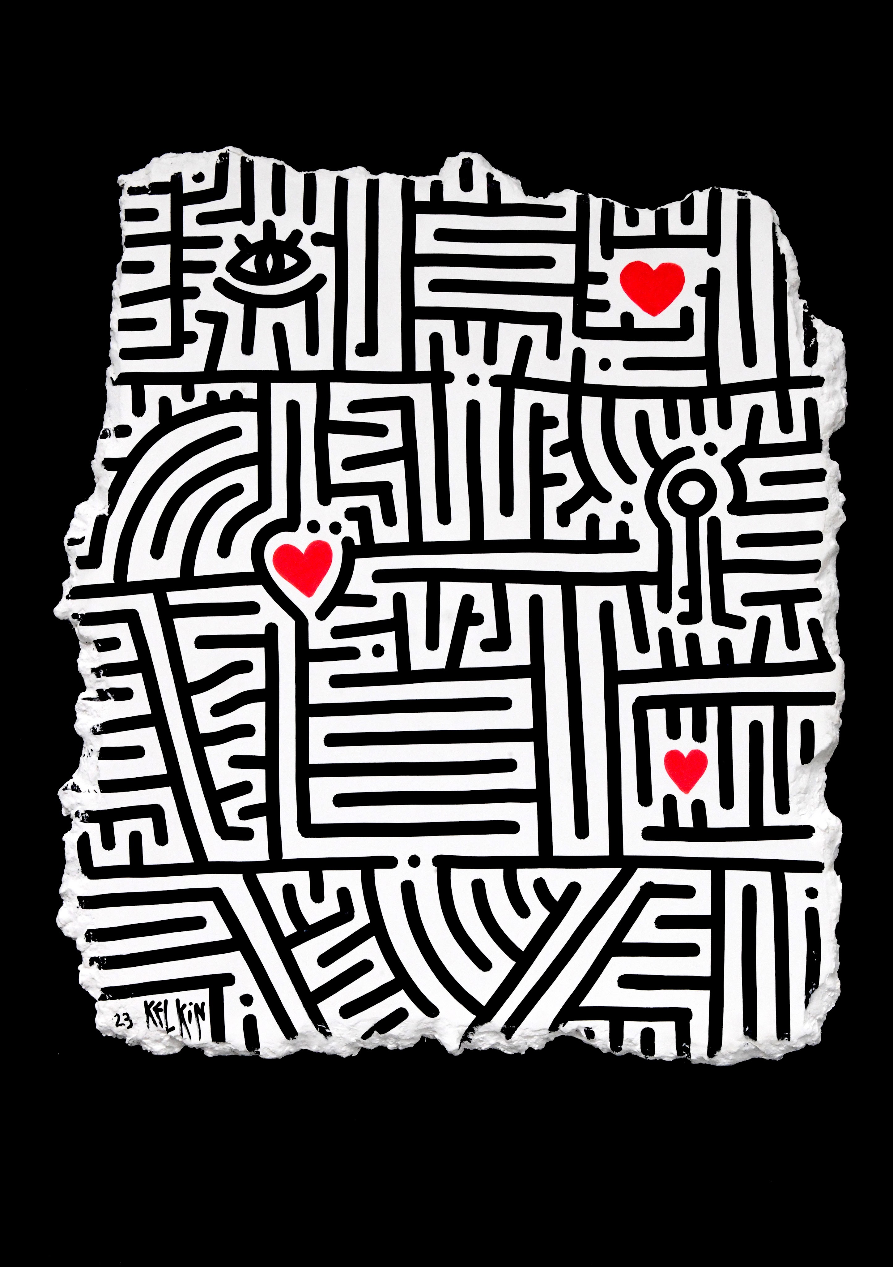 « Le couloir du temps », 116 x 89 cm, marqueur, aérosol sur toile de lin. 2019