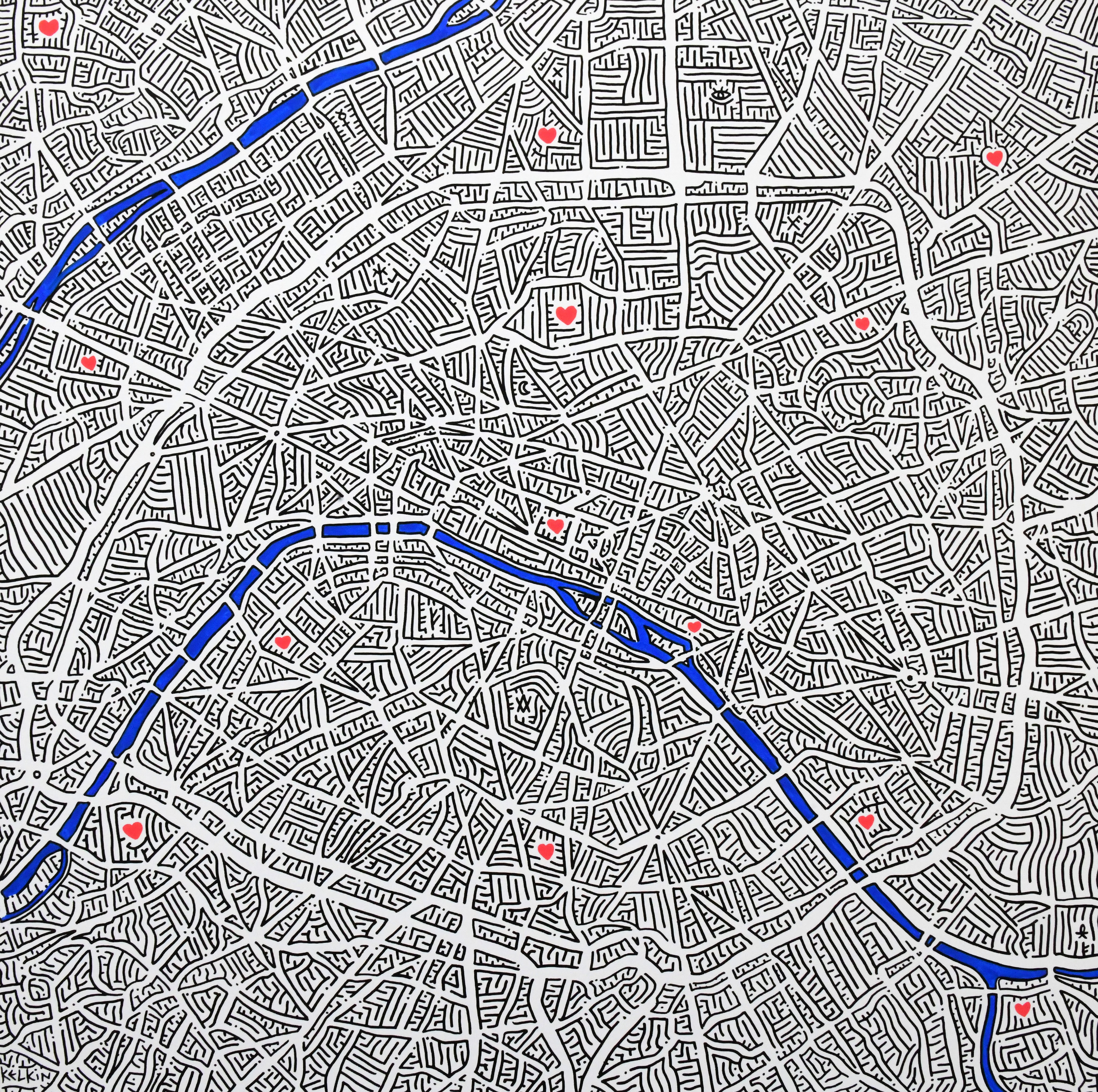« Plan de Paris »; acrylique sur toile de coton, 100 x 100 cm, 2023.